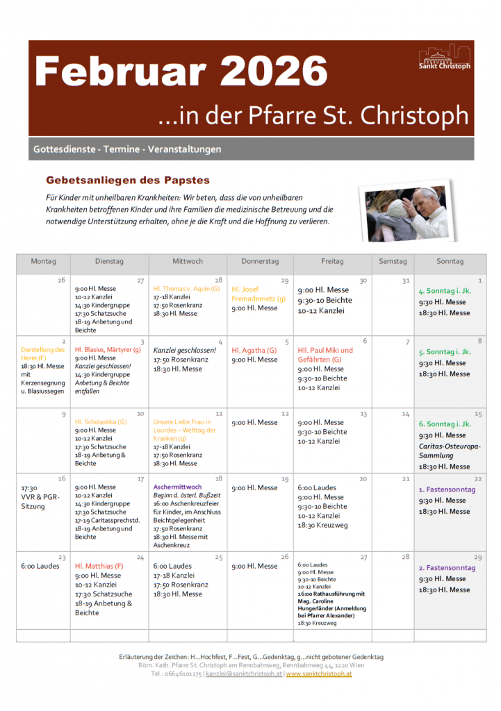 Aktuelle Gottesdienste, Termine und Veranstaltungen in der Pfarre St. Christoph am Rennbahnweg